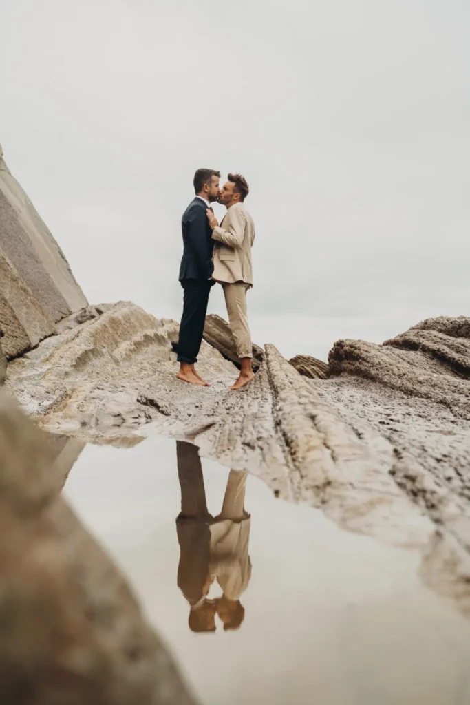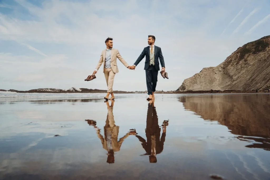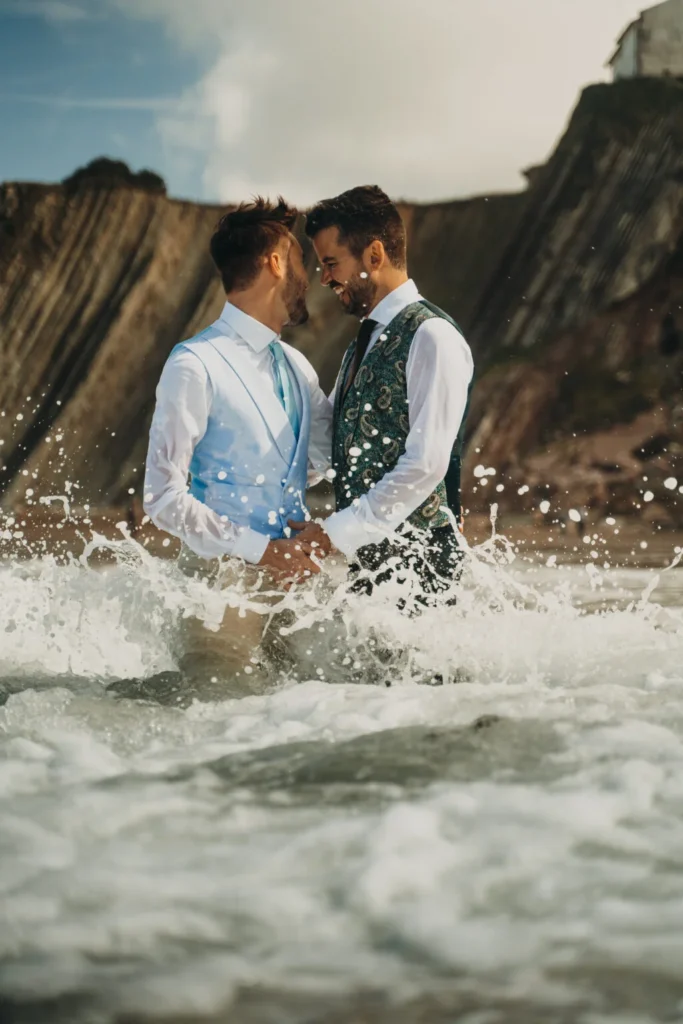 Después de esta gran fiesta, Joaquim y Salva decidieron hacerse una última sesión de fotos con sus trajes de novios. Esta vez eligieron la playa de Zumaia (País Vasco) y como era la última vez que iban a lucir esos trajes, decidieron ir con todo y se metieron en el agua.