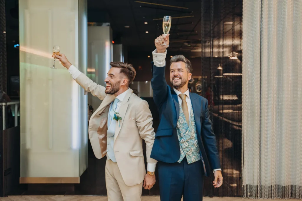 Una de las cosas que Joaquim y Salva comparten es su pasión por Eurovisión, así que su boda tuvo muchos guiños al festival. A cada mesa, le asignaron el título de una canción de España en Eurovisión y a los invitados les encantó. No hace falta decir que bailaron todas y cada una de estas canciones durante la fiesta. La canción que eligieron para el baile fue «Tu canción», que representó a España en 2018, año en el que Joaquim y Salva fueron juntos al festival.