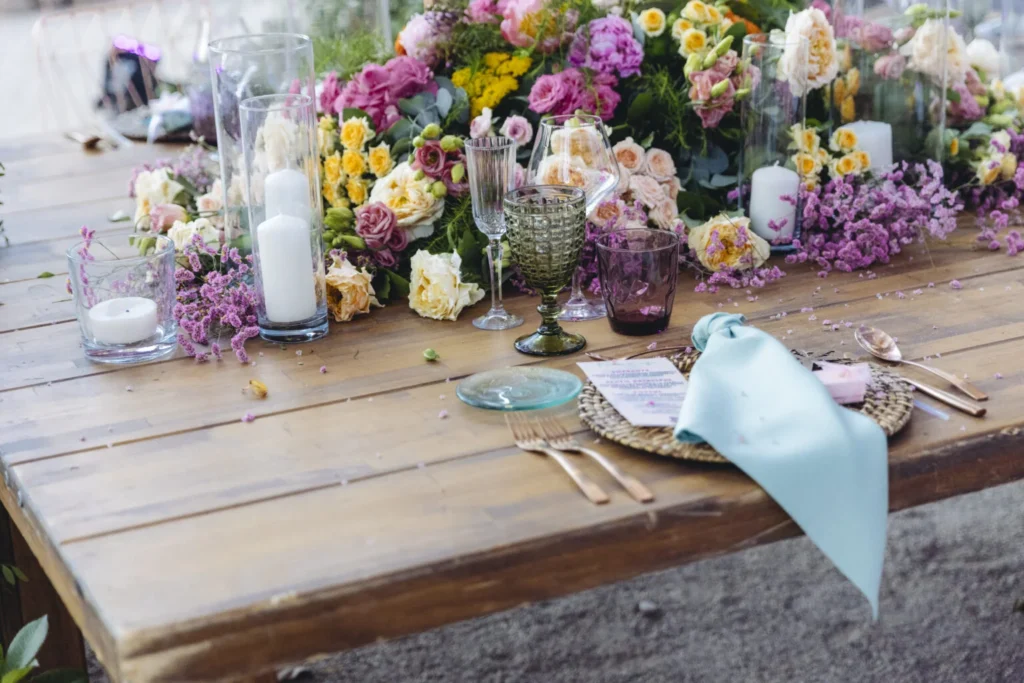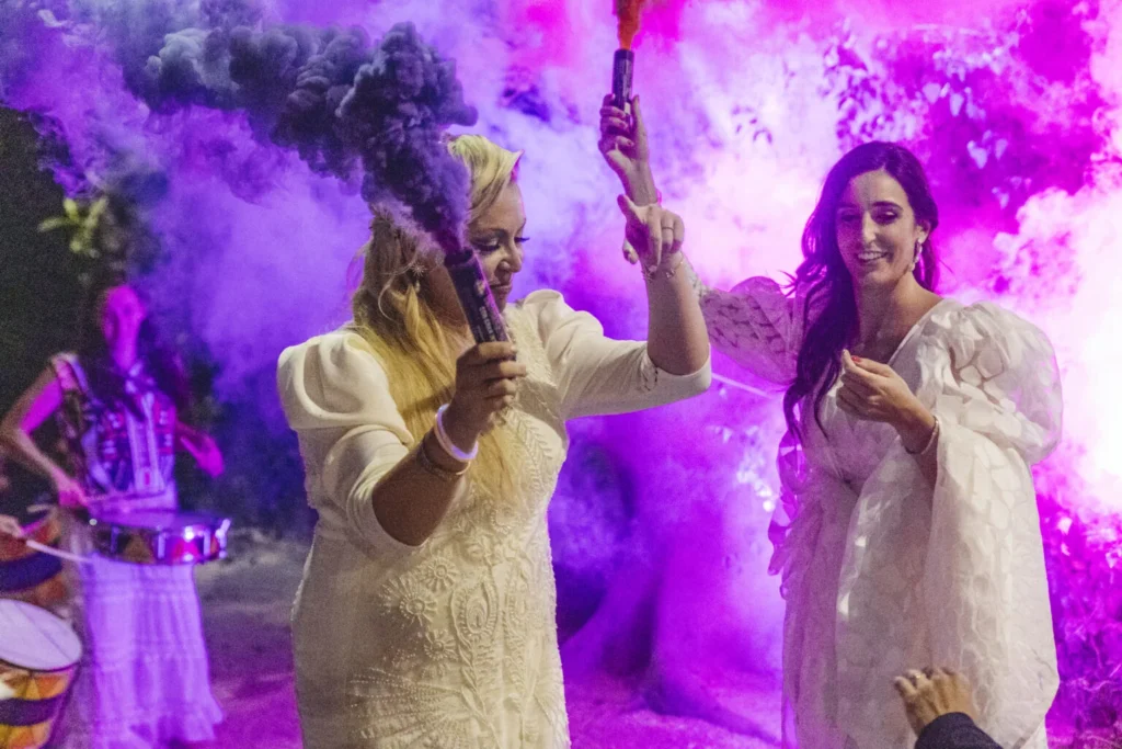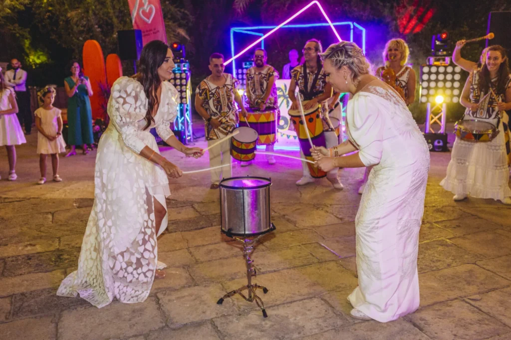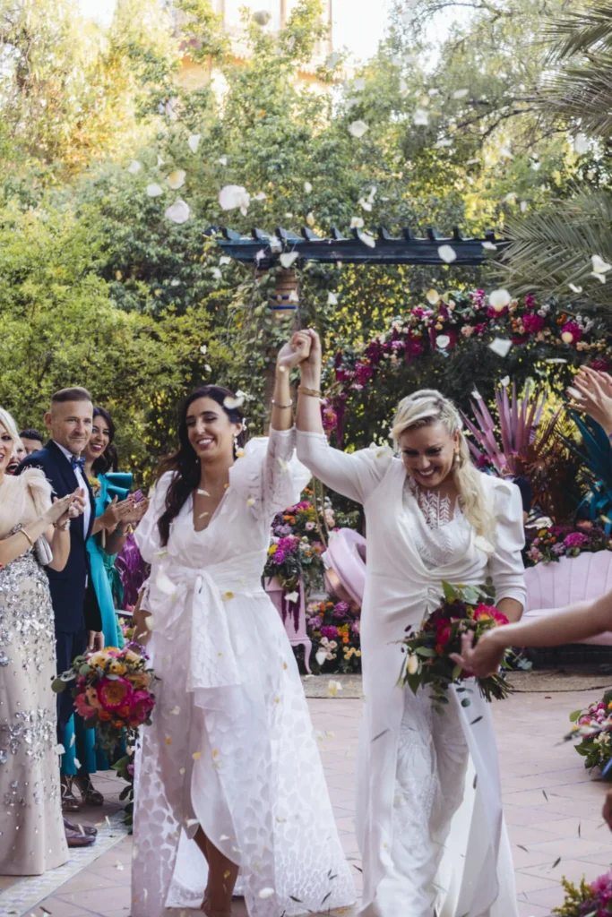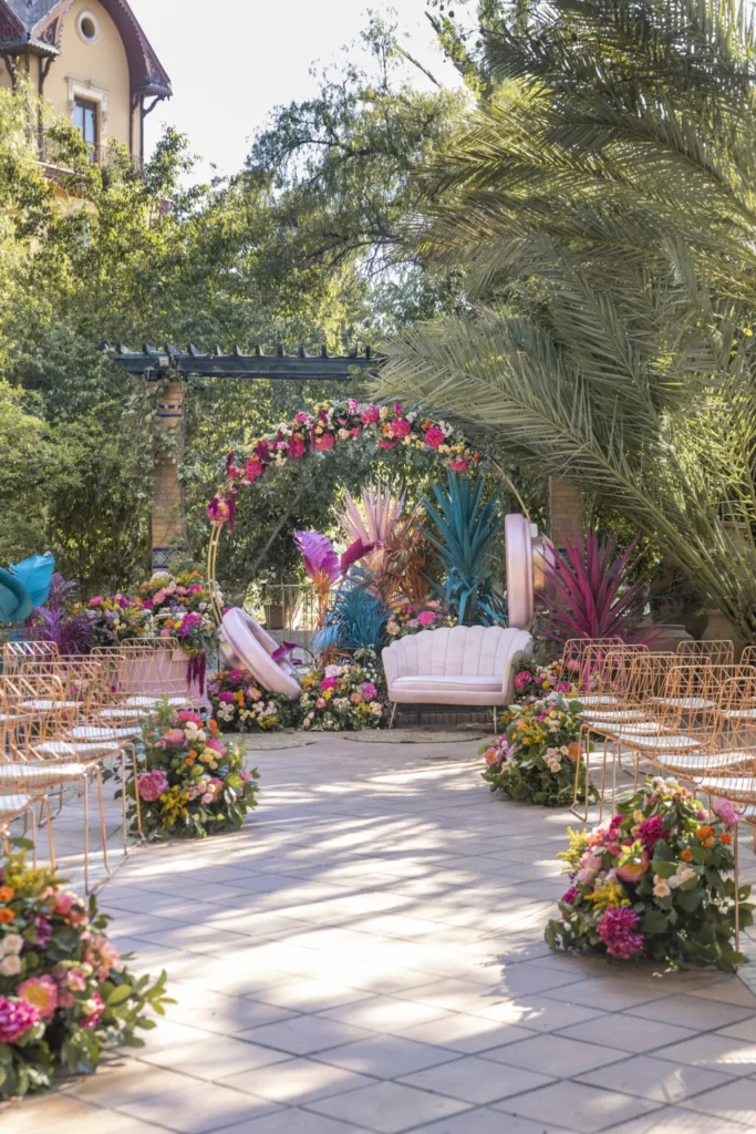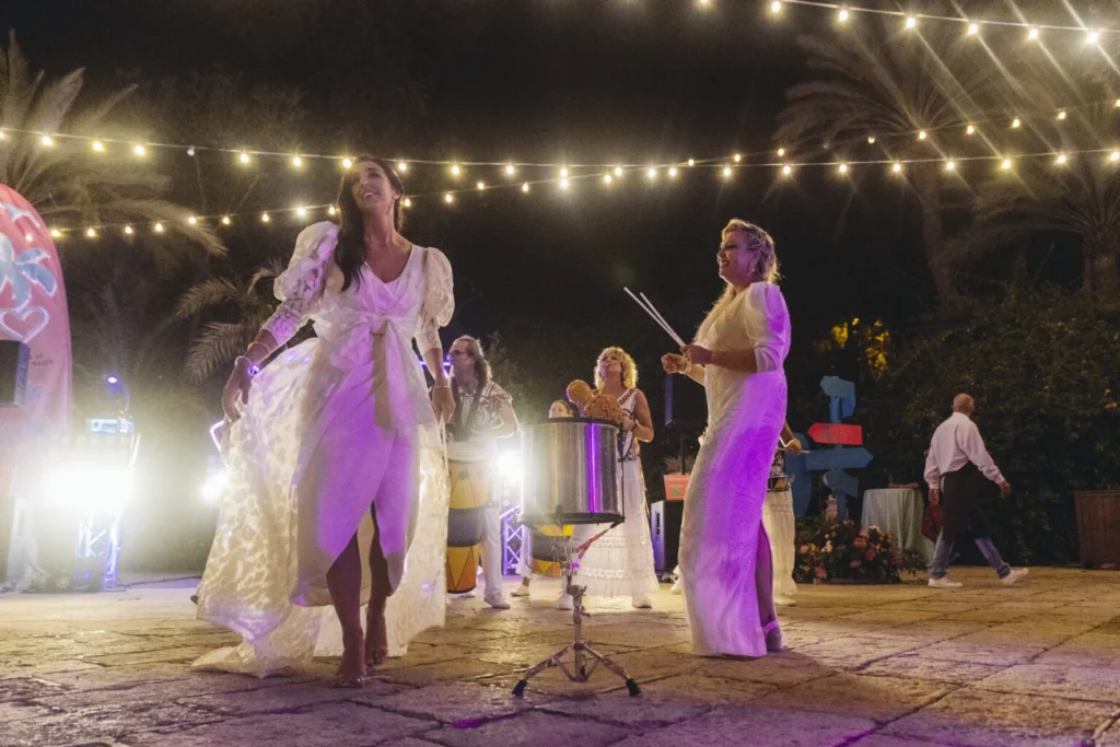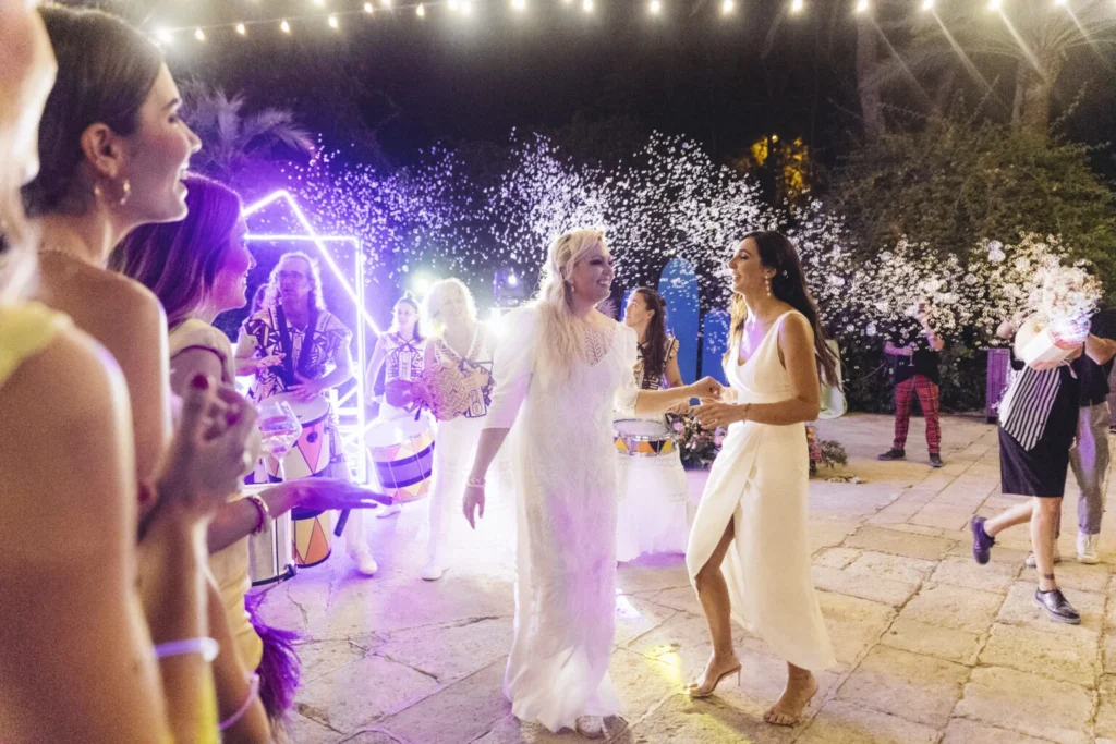 Música en directo, comida increíble y proveedores de lujo que hicieron de esta boda-festival un sueño de fantasía y color para Came y Pili.
