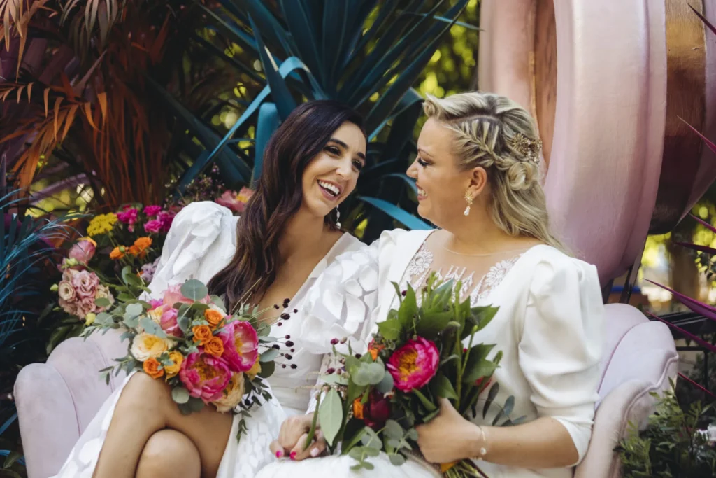 Opuestas físicamente pero muy parecidas en la forma de pensar y vivir la vida, así son ellas y así lo reflejaron el día de su boda.