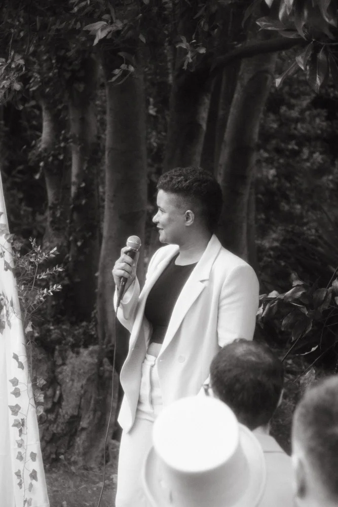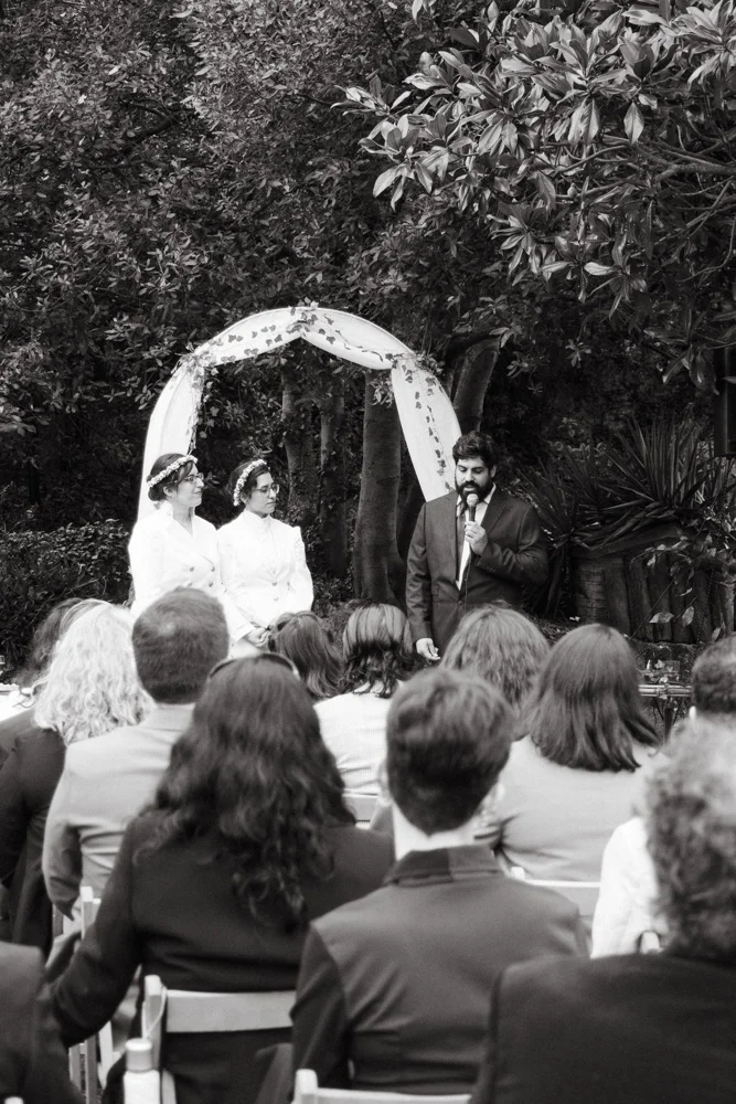 El encargado de oficiar la boda fue uno de sus mejores amigos y tres personas más salieron a leer un discurso de boda muy emotivo. Además, se leyeron poemas en la ceremonia que Rocío y Sara habían elegido.