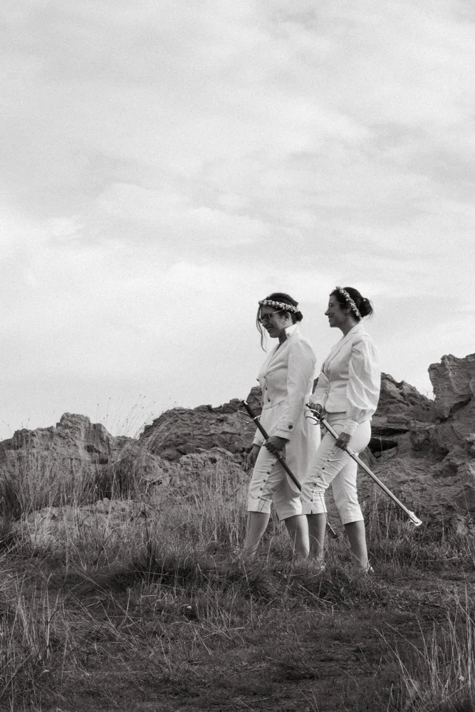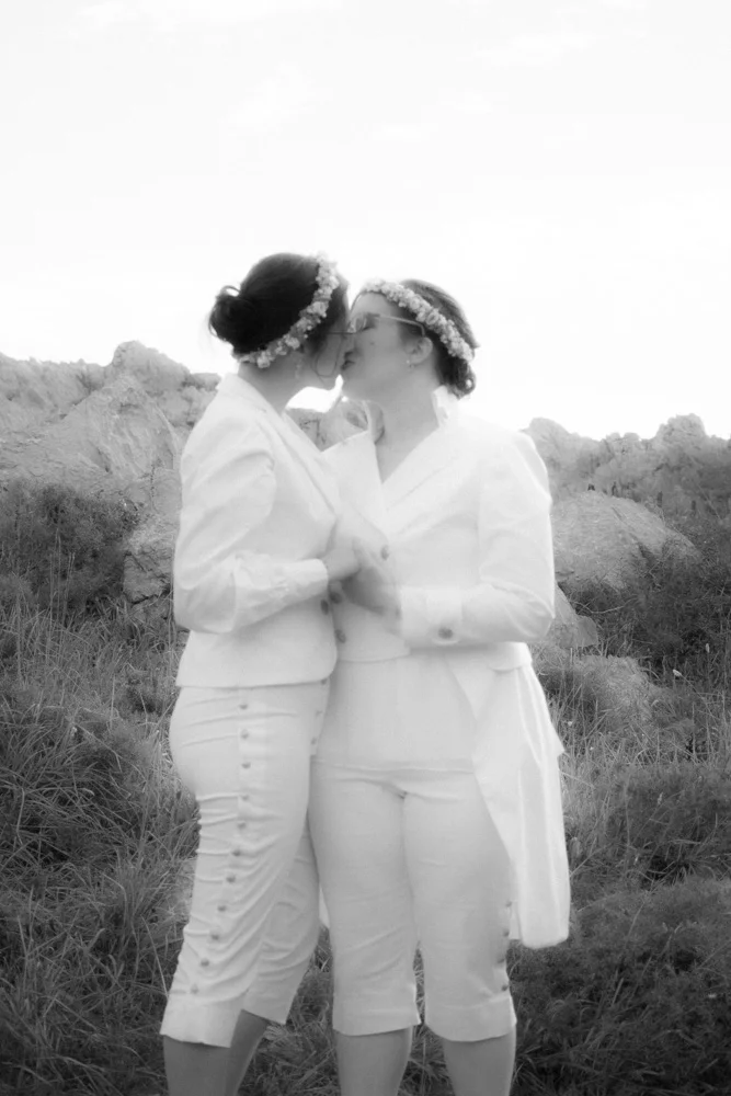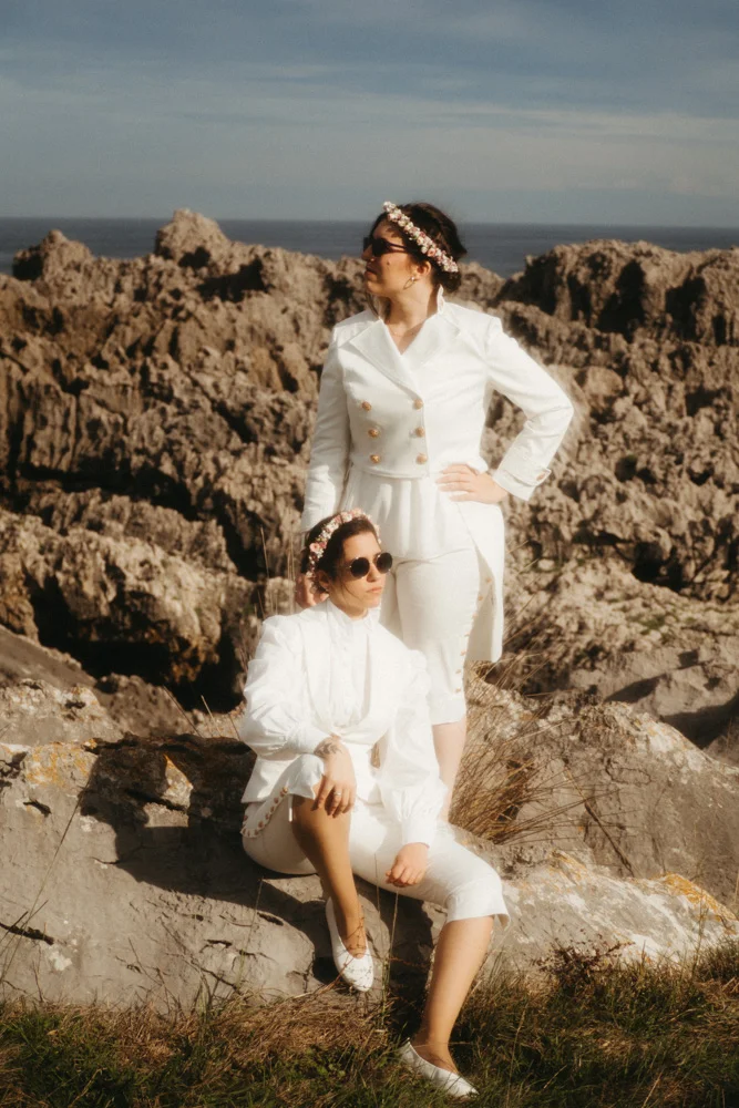 Después de la primera ceremonia en el juzgado, con la familia más cercana, las novias se hicieron unas fotos de boda en unos acantilados antes de ir a comer. «Fue un día perfecto, familiar y agradable». Luego, terminaron el día tomándose unos cócteles por la ciudad.