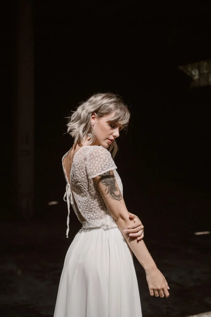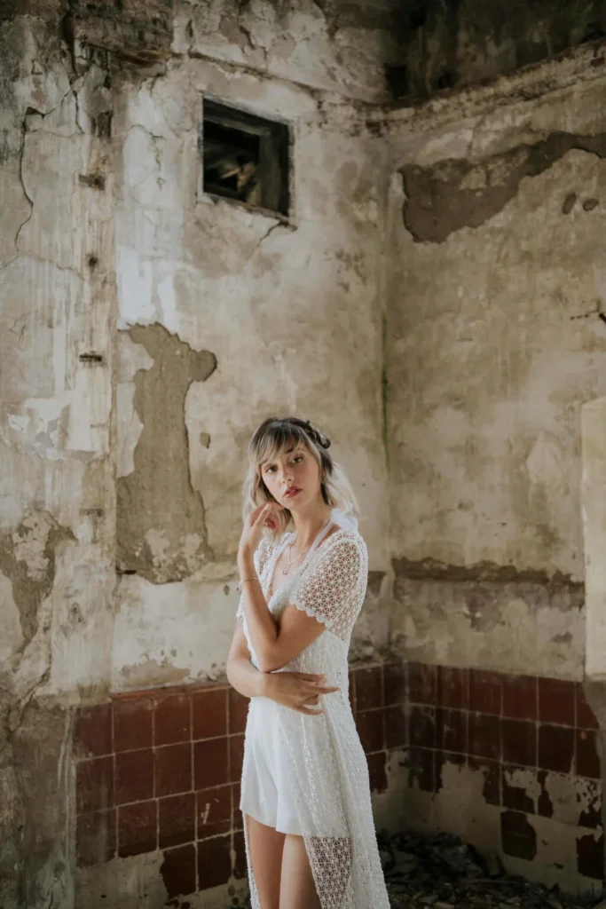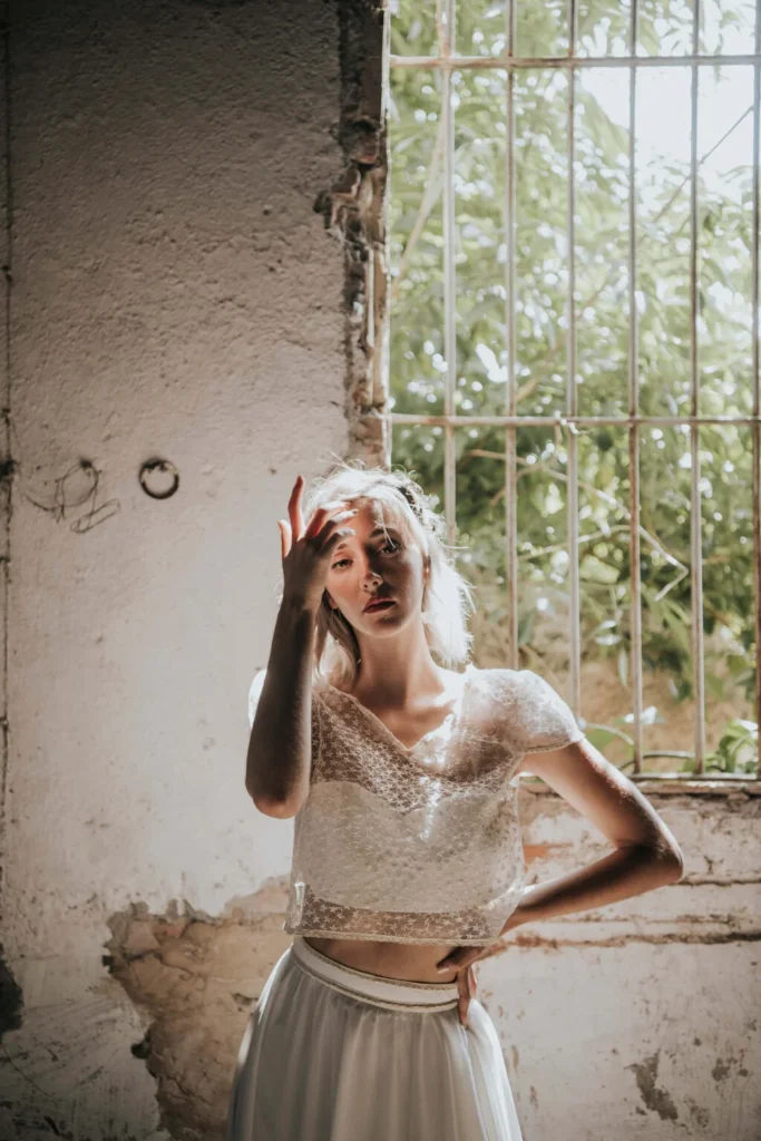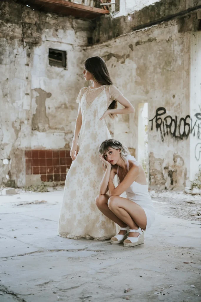 Sandra Jordà fue la diseñadora que puso forma a este shooting. Ella fue la que ideó cada puntada y cada dobladillo. Su amor por la costura ya le viene de lejos, pues su madre ya regentaba un negocio donde ella creció entre telas e hilos. Hoy, convertida en una reputada diseñadora de vestidos de boda, no dudó en confiar en un equipo que plasmó sus ideas y llevar a cabo así este shooting Cruelty Free. Os invitamos a entrar en sus redes y en su web y descubrir vestidos de novia únicos, vestidos con personalidad, diferentes y atrevidos.