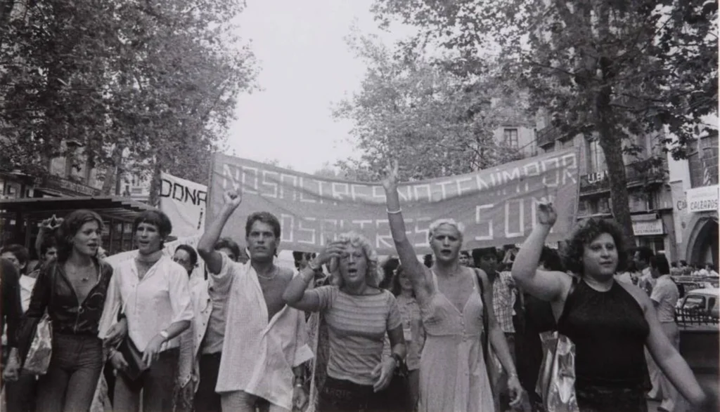 A ella acudieron unas 4.000 personas en La Rambla: personas del colectivo, activistas y también familias. Aunque España ya estaba en transición democrática, la manifestación fue reprimida por la policía con detenciones y cargas.